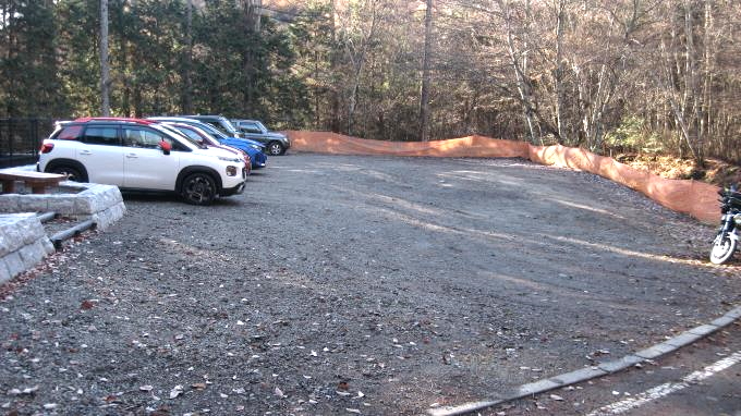 ここが登山口に一番近い駐車場です。平日の朝でこんな感じですが、下山時には右側にも車が止まっていて満車状態でした。