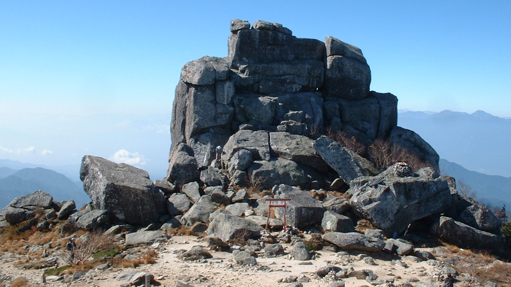金峰山のシンボルである五丈岩は、下の鳥居の大きさから見てもかなり大きな岩だとわかります。