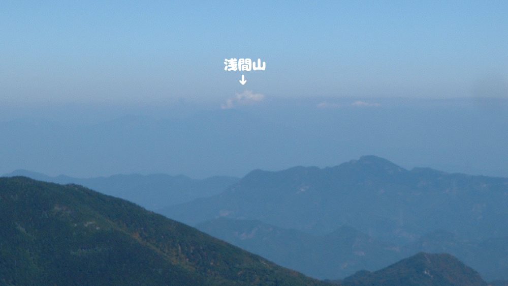 目を凝らしてみると浅間山の火口から噴煙が出ているのがわかります。