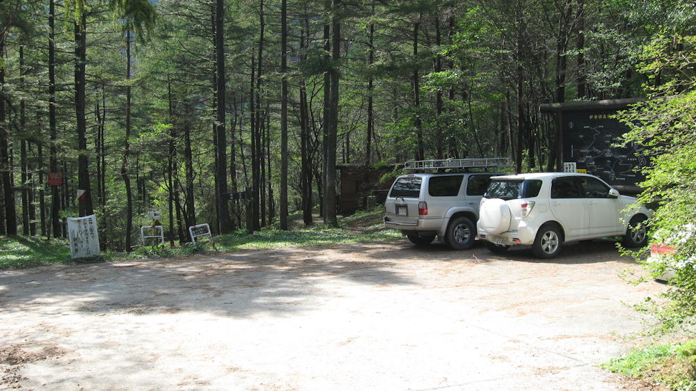 伊香保森林公園を抜けて車道に出ると、未知の向い側に水沢山の登山口がありますが、車道の左を見るとちょっとした駐車スペースがあります。