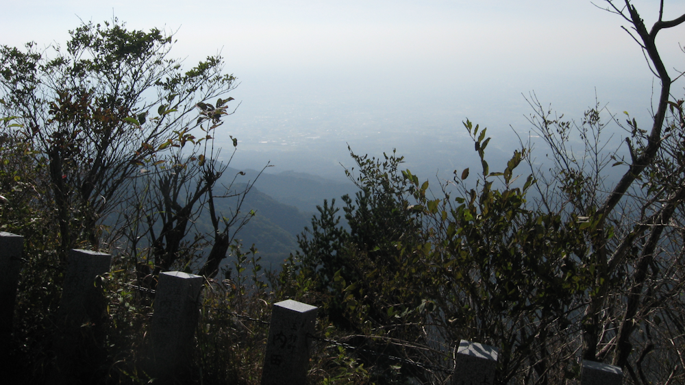 相馬山の山頂は、とても狭く休憩できる場所は全くありません。見晴らしは南側のみで榛名湖方面は全く見えません。