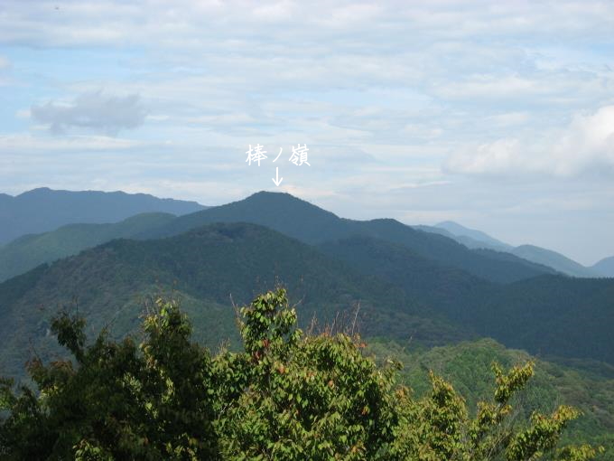 正面に見える山頂が平らな山が名栗の棒ノ嶺(棒の折れ山)になります。この岩茸石山からも稜線づたいに登ることもできます。