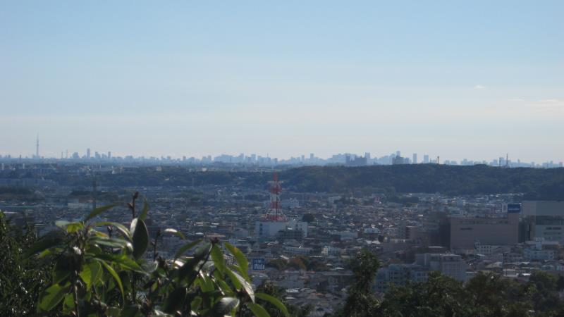 手前に見えるのは飯能市街で、奥には都内の高層ビル群、そして左端には東京スカイツリーが見えます。