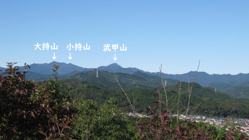 秩父の武甲山、小持山、大持山、関八州見晴台、越上山、日和田山方面を見渡せます。また空気が澄んでいると日和田山の背後に日光の男体山が見えることもあります。