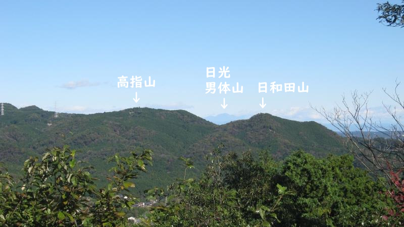 さらに右を見ると日高市の日和田山と高指山が見えます。そしてその間に運が良いと日光の男体山が見えることがあります。
