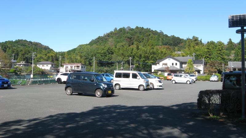 駐車場の正面には、天覧山の山頂が見えます。この山頂までは、駐車場から20分ちょっとで着いてしまいます。