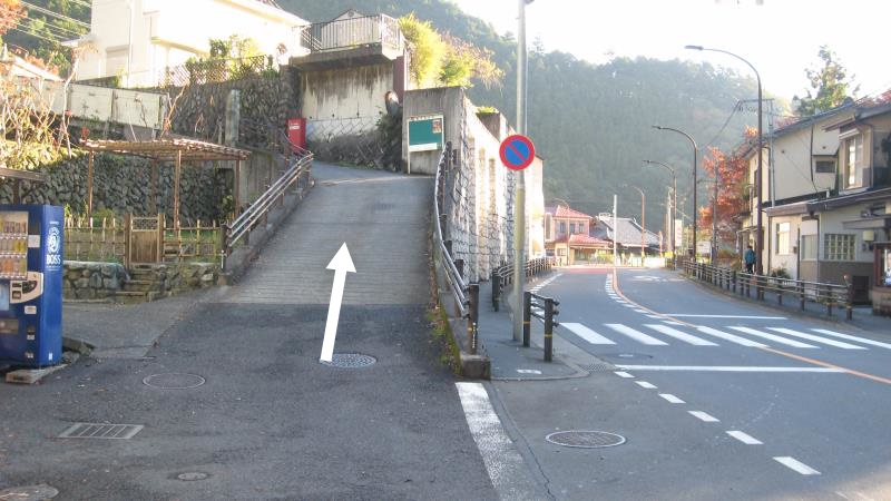 登山口へは、駐車場から青梅街道方面へ出て左の急坂を上ります。
