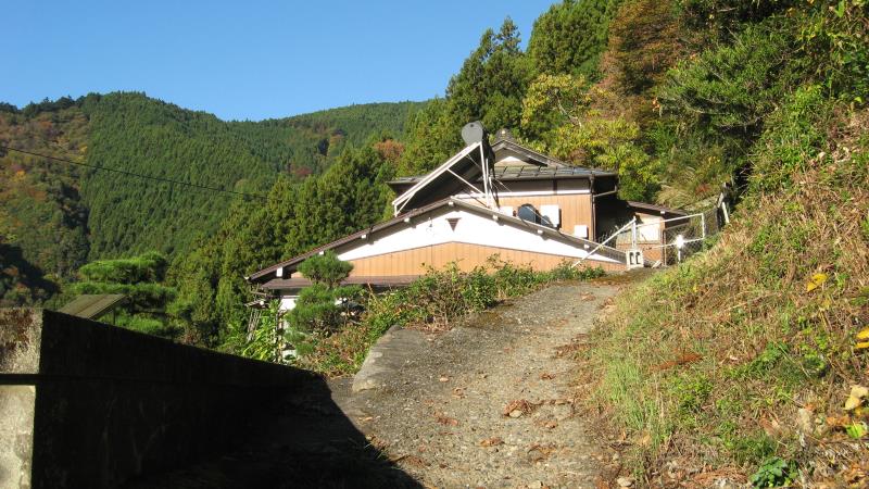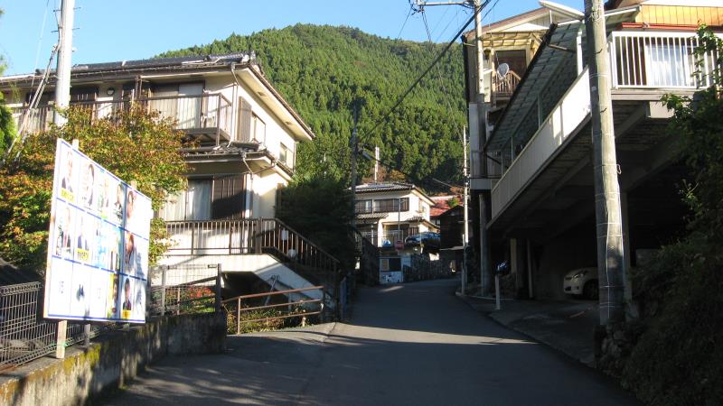 民家の立ち並ぶ舗装道路をまっすぐに上っていきます。