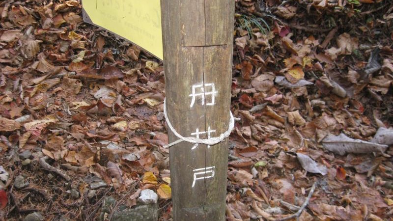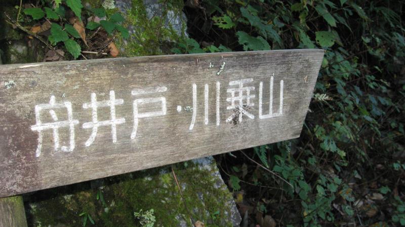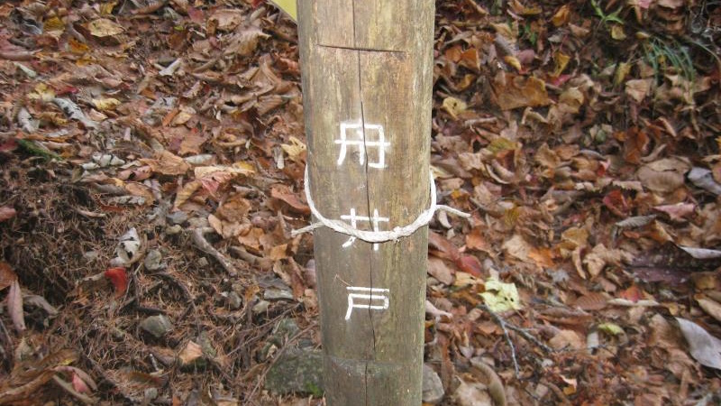 案内板の支柱に「舟井戸」と書かれていることを確認します。ここは本仁田山方面への分岐です。