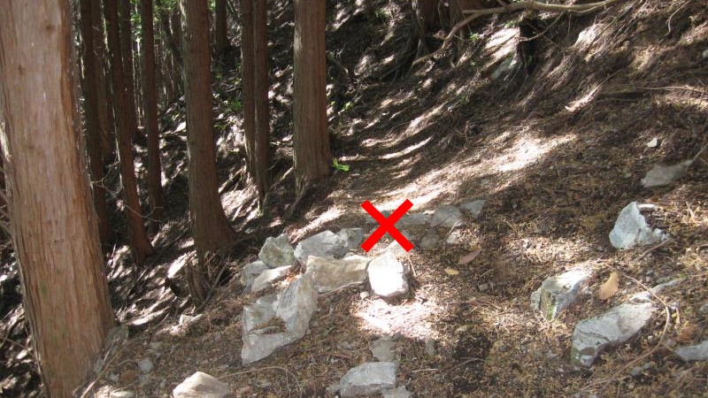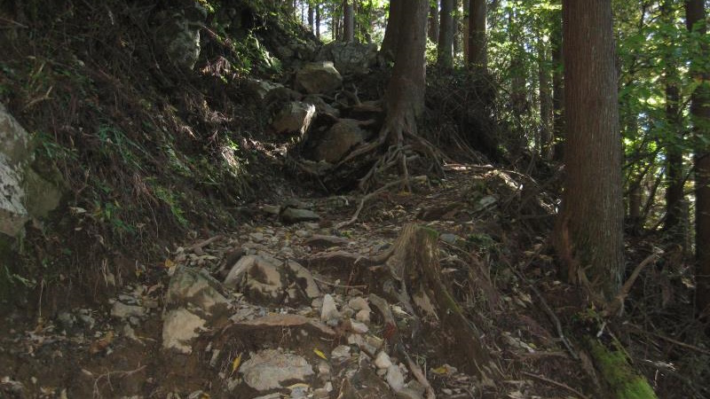 木製の階段が終わると今度は石がゴロゴロした歩きづらい道になります。また踏み跡も不明瞭なので慎重に道を探して進みます。