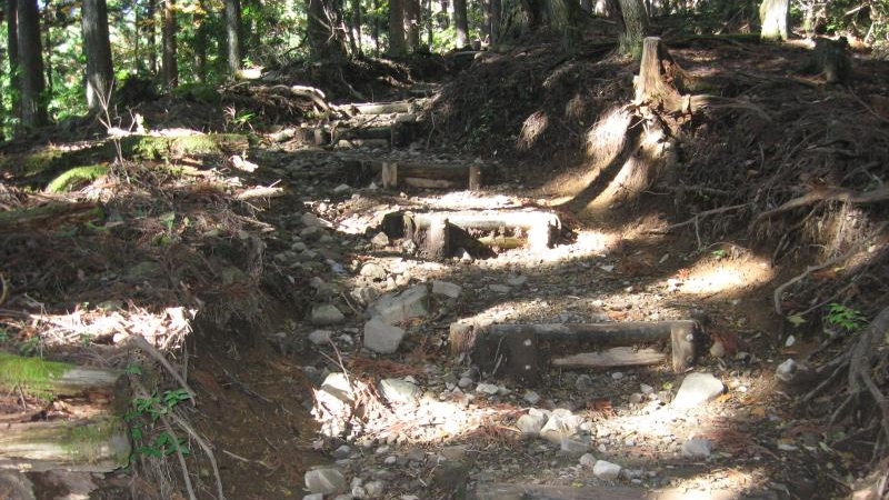 登山道は変化に富んでおり、とても歩きやすい平らな道もあれば、石がゴロゴロした道、段差の大きな道などがあるのでちょっと注意が必要です。