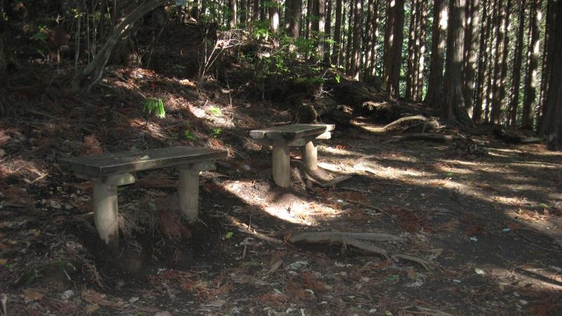 大根ノ山ノ神のまわりにはベンチが2つあるので座って休憩できます。(次のベンチまでは70分です)