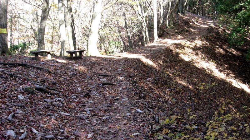 そのちょっと先にもベンチが3つあります。その先が急な上り斜面になっています。