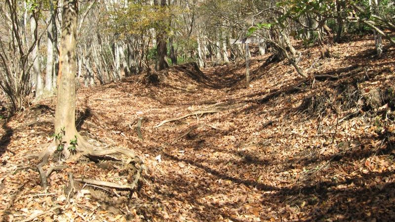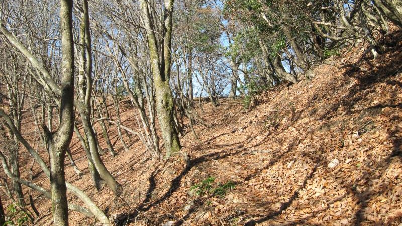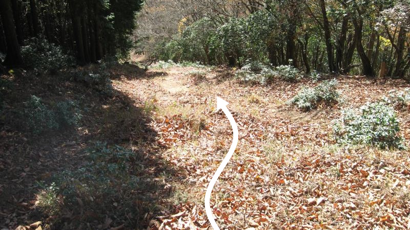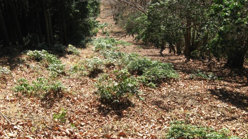 右を見ると日当たりのよい急斜面があります。こちらへ進んでみます。(案内板はありません)