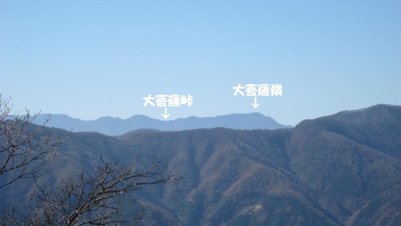 こちらは大菩薩峠と大菩薩嶺のアップです。大菩薩峠から大菩薩嶺の手前の雷岩までの稜線からの展望は本当に素晴らしいものがあります。