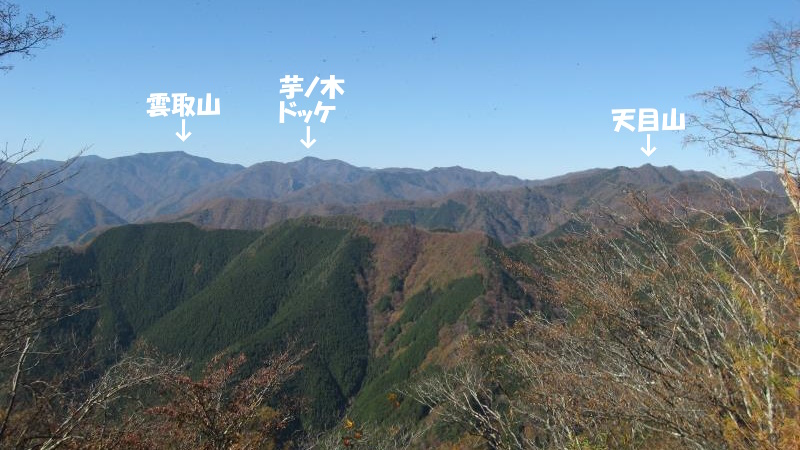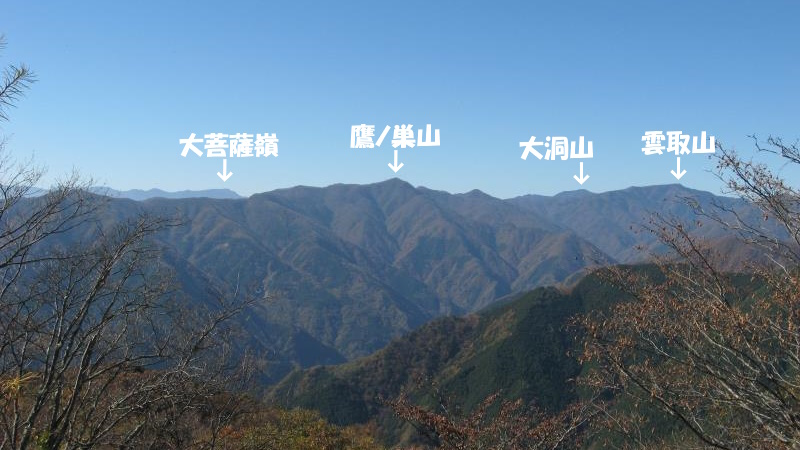 雲取山、大菩薩嶺、鷹ノ巣山、天目山と自分が登ったことのある山を別の山から眺めるのは格別です。