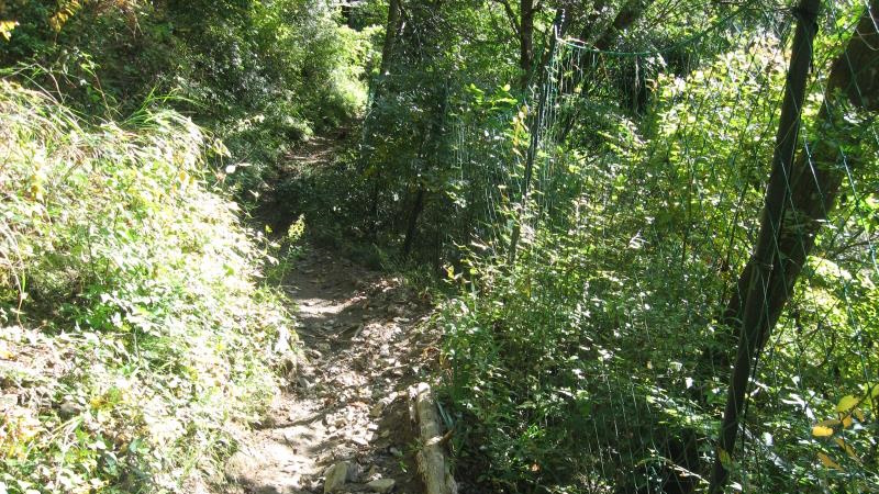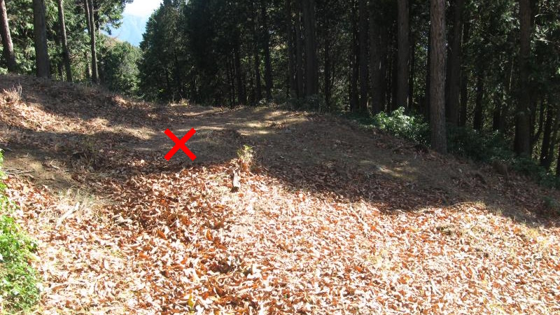 こちらが大きく左へ曲がった正しい道。見比べるとこちらのほうが広くてしっかりしているのですが、前しか見ていないとまず気が付きません。