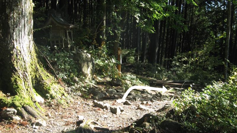 大根ノ山ノ神から約70分で案内板の立つ分岐が見えてきます。ここが大ダワへの分岐です。