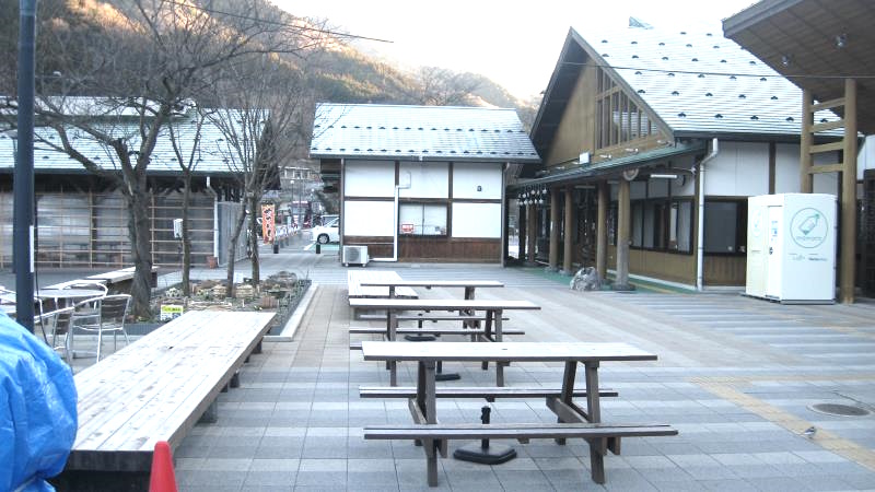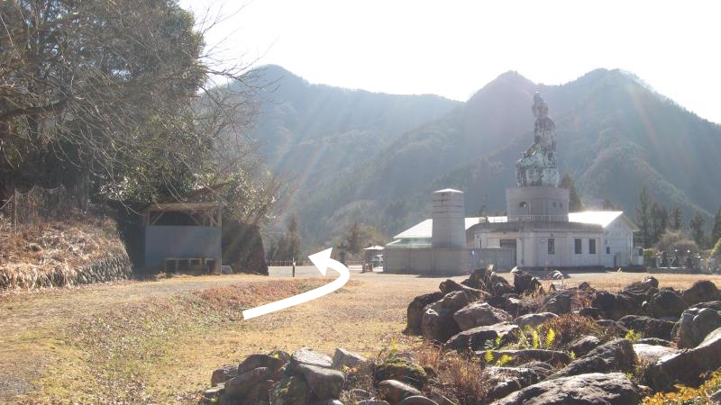 5分ほど道なりに舗装道路を登っていくと右側に建物が見えてきます。この建物の右奥には公衆トイレ(横瀬町観光トイレ)があります。