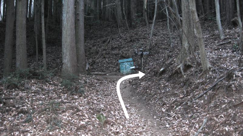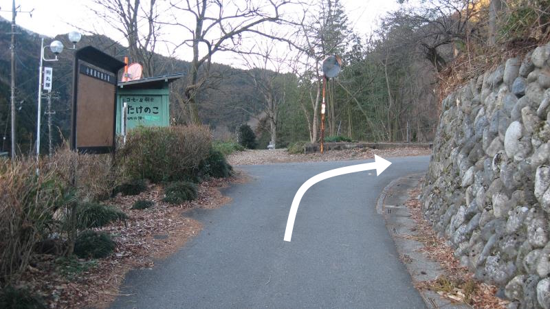 100mほど進むとまた案内板のある分岐があります。ここを右へ曲がります。