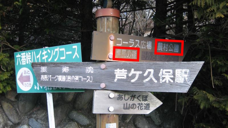 案内板の「農村公園、県民の森」方面へ進みます。