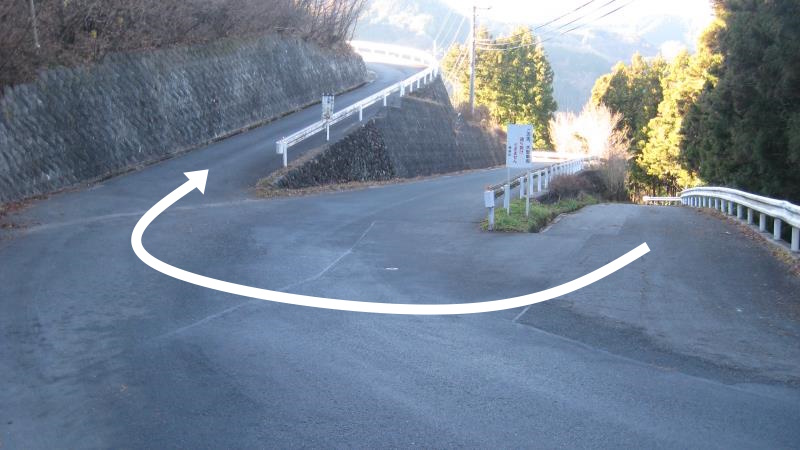 案内板の「農村公園、県民の森」の文字を確認し、右へ進みます。