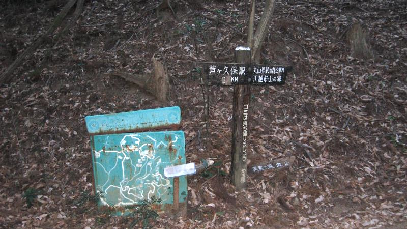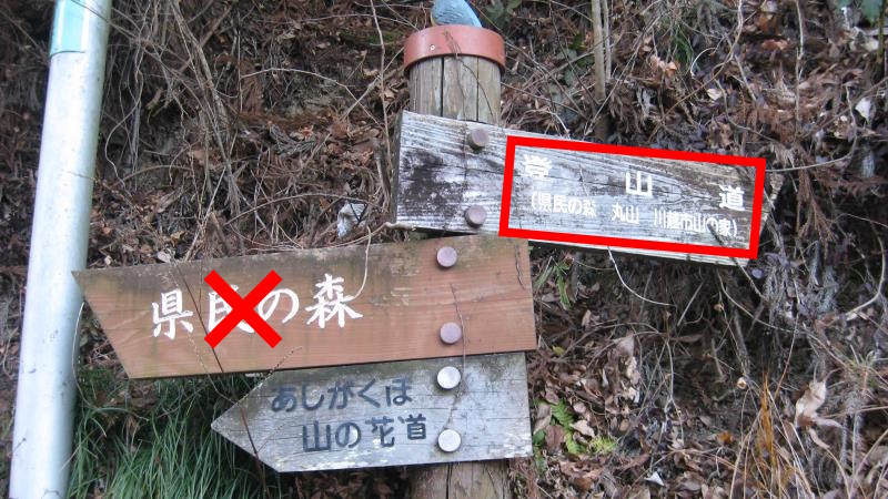 分岐のちょっと先に案内板が立っています。「登山道 県民の森 丸山」方面へ進みます。