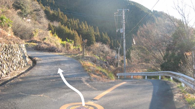 駐車場から34分ほどで登山口に到着です。(右へ曲がると民家の敷地内なので立ち入ってはいけません)