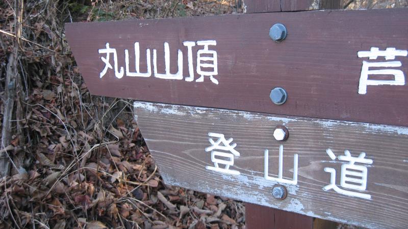案内板には、「丸山山頂」の文字が見えてきました。