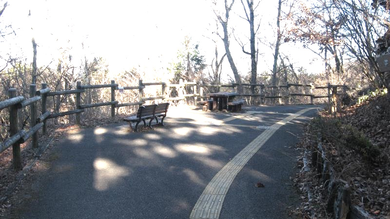 左を見るとテーブルベンチなどがあるのがわかります。この舗装道路を右へ進むとすぐに駐車場があります。ここまで車で上がって来れるようです。