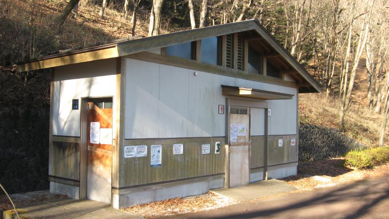 駐車場より100分ほど歩き、階段を左に降りた場所にある公衆トイレですが、冬期(11月~4月)は凍結防止のため利用できません。