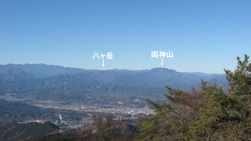 さらに右を見ると日本百名山の両神山とその左奥には白く雪をかぶった八ヶ岳が見えます。