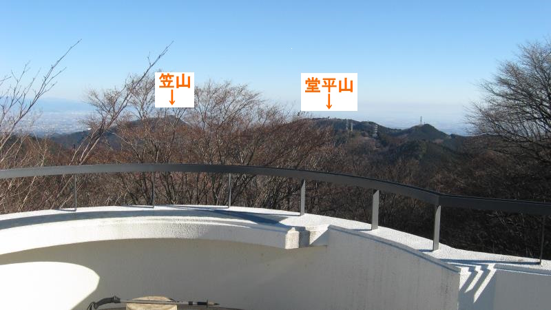 その右手前には、東秩父村の笠山と堂平山が見えます。