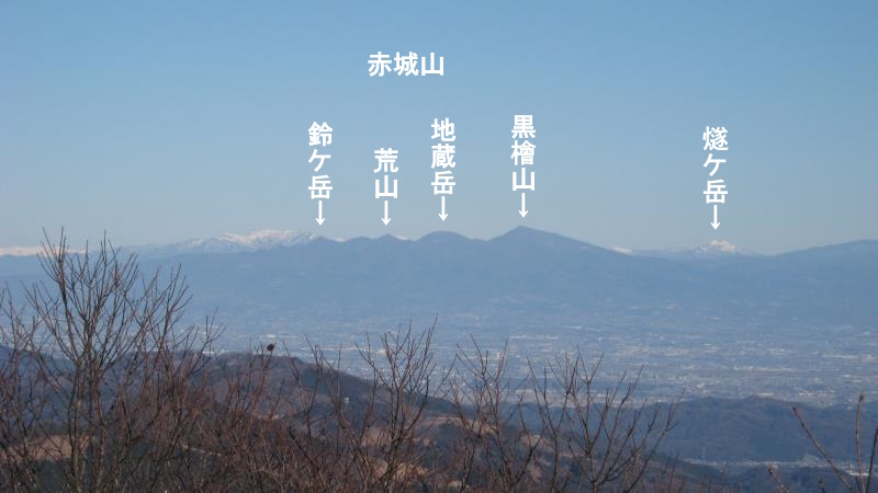 榛名山の右を見ると赤城山が見えます。そして赤城山の右奥には、白く雪をかぶった尾瀬の燧ケ岳まで見えました。