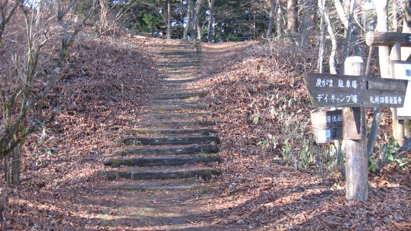 仮設トイレ前の左の階段を上ります。