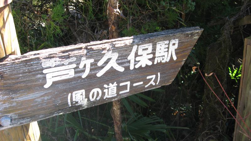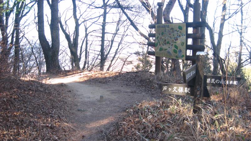 舗装道路が終わる場所に案内板が立っています。「芦ヶ久保駅(風の道コース)」と書かれていることを確認し、直進します。