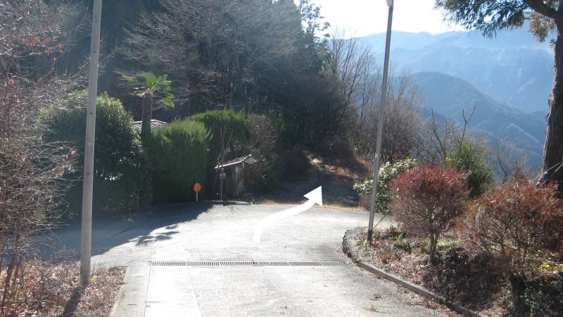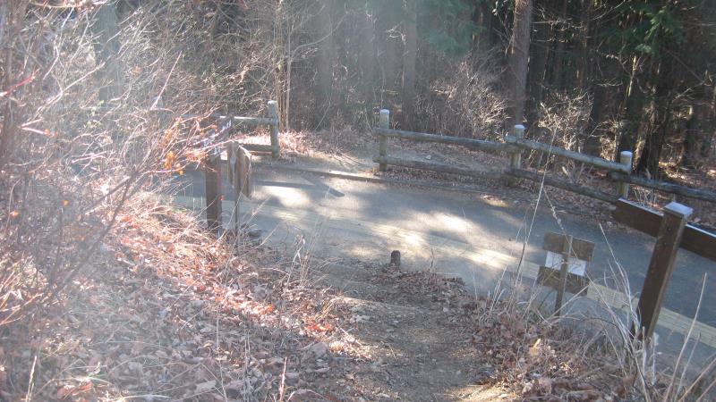 下山は公衆トイレのすぐ先を左へ曲がり、舗装道路上を下っていきます。