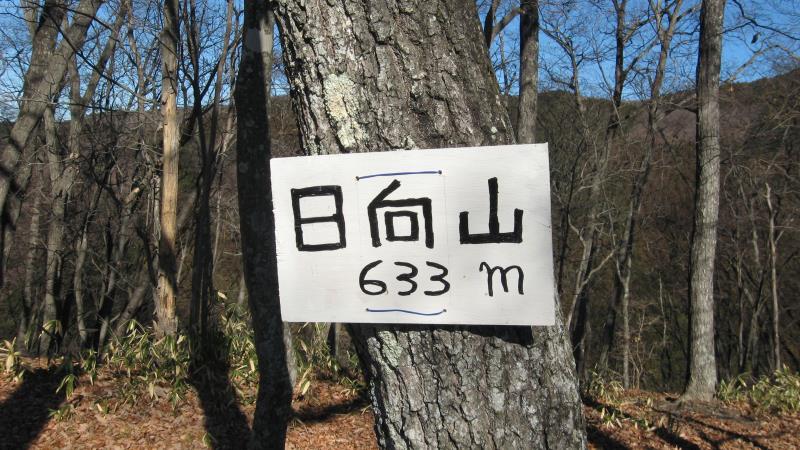 日向山の山頂には行政の設置した山頂を示すポールなどはありません。私製の看板があるだけです。