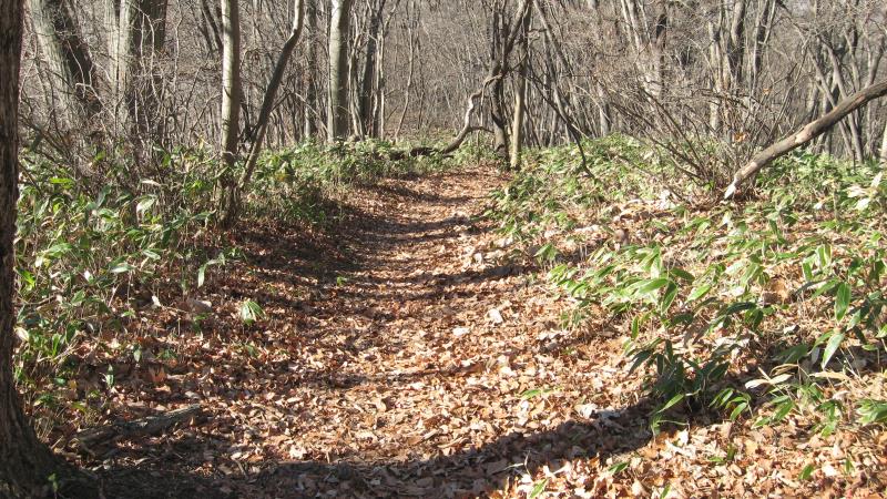 登山道の日当たりがだいぶ良くなってきました。ここからは尾根歩きのようです。