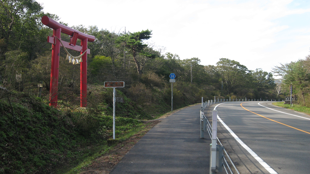 駐車場の向い側に赤い鳥居が見えます。ここが相馬山の登山口です。相馬山への登山道はとても明瞭で道に迷うようなことはありません。