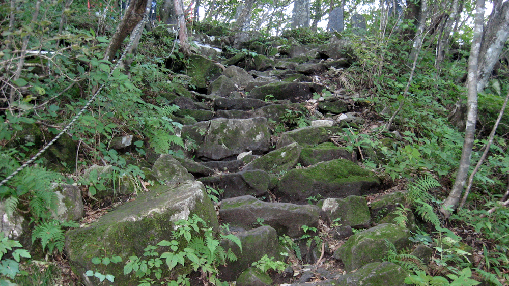 しばらくすると傾斜がきつくなり、大きな石を乗り越えて行かなければならなくなってきます。