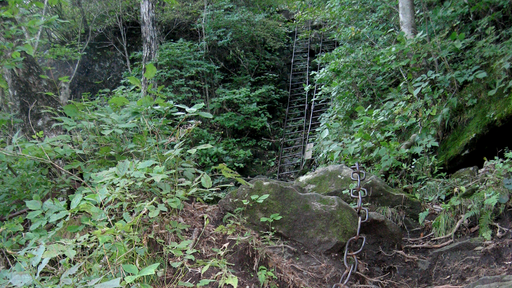 さらにしばらく進むと大きな石に加えて傾斜もきつくなり、鎖場や鉄のはしごが出てきます。