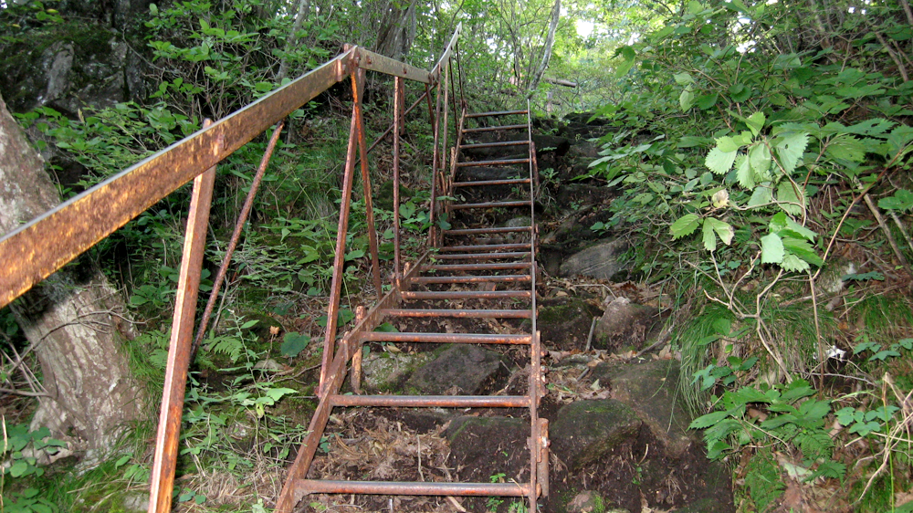 鉄のはしごは垂直に近いだけでなく、大きな石が邪魔をしてつま先を入れることができず、とても登りにくい場所もあるので慎重に進みます。