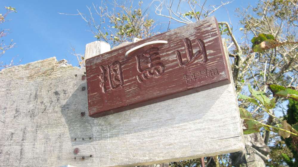 神社の横には相馬山の山頂を示す私製の看板がありました。相馬山の標高は、1,411mです。