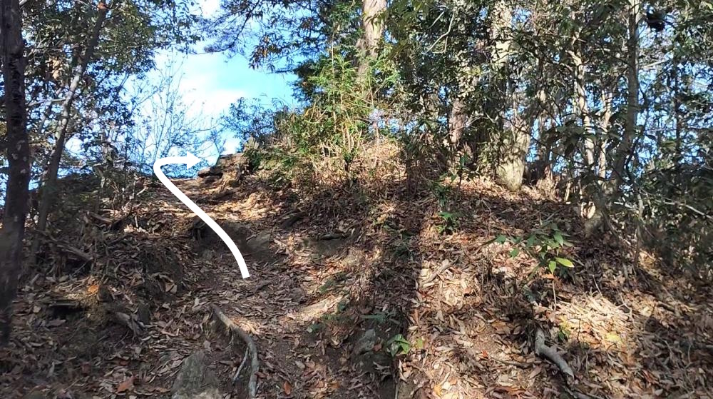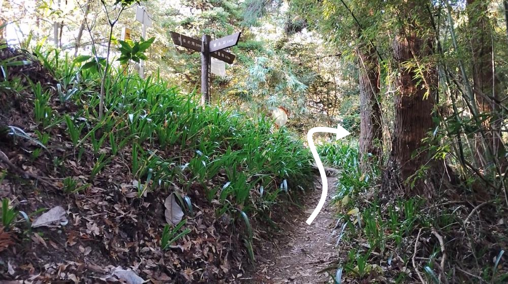登山道を直進してしまうと観音ケ岳山頂を通り過ぎてしまうので注意が必要です。