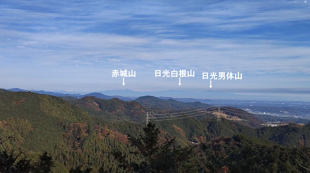 木々の切れ間から日光の男体山方面を眺めることができます。