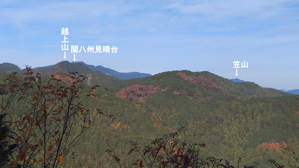 その左を見ると埼玉県の越上山とその背後に関八州見晴台が見えます。そして右奥に見えるのは東秩父の笠山です。