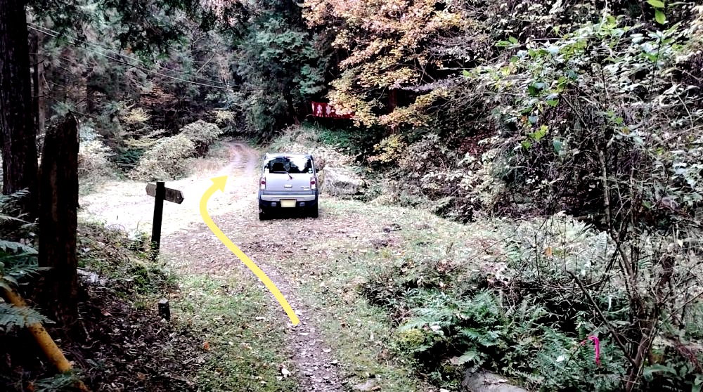 林道からは斜め右方向へ進みます。