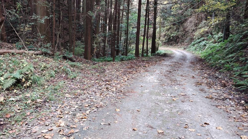 車が通れるほどの広い林道を道なりに進みます。