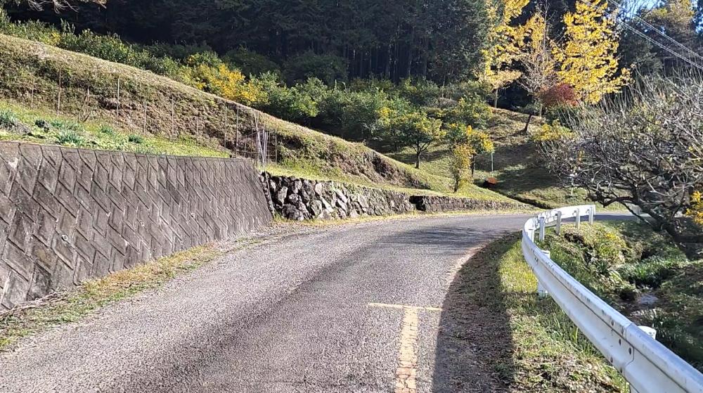 舗装道路は狭いのですが、それほど車は通らないので紅葉を楽しみながら歩くことができます。